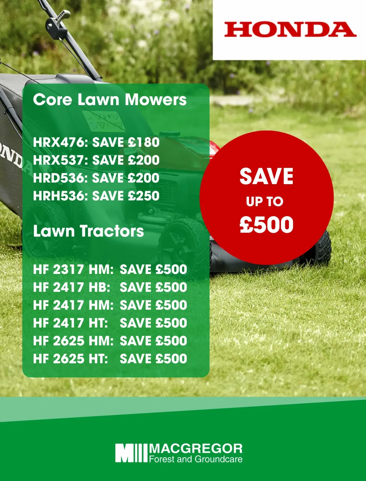 Save up to £500 on Honda Lawn Mowers